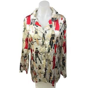 Taylor Swift Eras Tour Multicolor Silk Satin Button Up Long Sleeve Pajama Top M