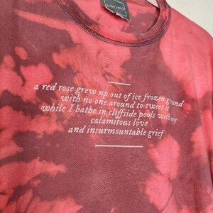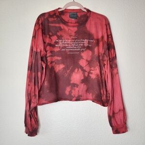 this is in great condition with minor signs of wear and cracking on the graphics. this top has been custom dyed for a one of a kind garment. color may vary throughout due to its hand dyed nature.