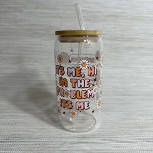 Taylor Swift Glass Can with Bamboo Lid Glass Straw 16oz Its Me Hi Im The Problem