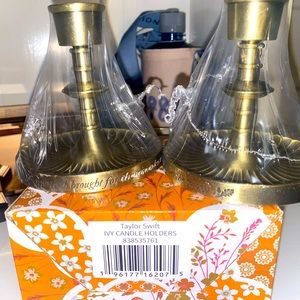 Brand new , still wrapped in plastic and includes original box !! Taylor Swift Ivy candle holders !! These are so beautiful! A beautiful antique bronze color with Ivy song lyrics enscribed on the candle holders base! Sold out on her website! These fit in perfectly with TTPD era as well!!