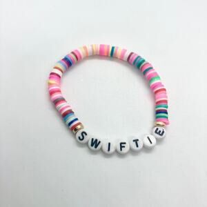 Includes five bracelets as pictured. Gold beads with a white bead and red heart. Love Story. Sun Flower bead and golden stars with colorful beads. Swiftie. Colorful beads bracelet. Made of clay and zinc alloy. Beading may vary from bracelet to bracelet and not be exactly as pictured.