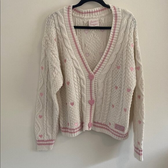 Taylor Swift Lover Cream and Pink Cable Knit Cardigan Sweater size XS/Small