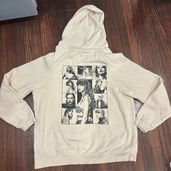 Taylor Swift Official The Eras Tour Cream Hooded Sweatshirt Front Pocket Sz XL