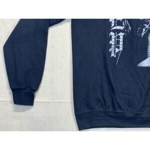 This Taylor Swift “Reputation” inspired sweatshirt features a bold black design with a grayscale portrait and gothic “REP” lettering on the front. Made on a Gildan Heavy Blend blank, this pullover offers a soft fleece interior and a classic fit in a size Small. The sweatshirt shows normal light wear consistent with pre-owned clothing but remains in good condition with no major flaws. Great for Swifties, collectors, or anyone wanting to rep the Reputation aesthetic.