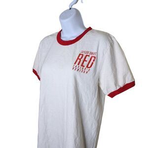 Taylor Swift Red Short Sleeve Ringer TShirt Womens Size S White