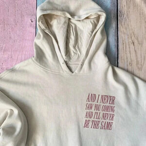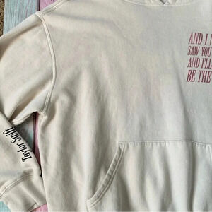 Taylor Swift Ref Taylor’s version cream color hoodie. In great preowned condition. Minimal to no signs of wear. It’s missing the string that goes around the hoodie. That’s pretty much the only flaw it has. Super soft hoodie. No rips or stains.