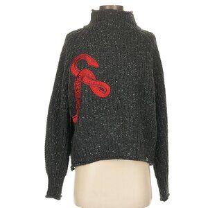 Marled charcoal (stock photo appears black, but it's really more of a dark grey) knit sweater with red embroidered snake design and TS patch.
