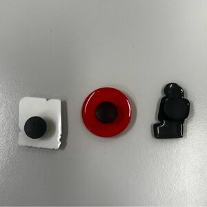 One circular charm resembling a vinyl record with "RED" printed on it.