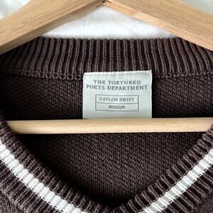 Taylor Swift TTPD V-Neck Cropped Brown Sweater Size M