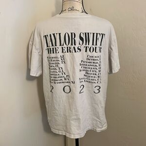 Taylor Swift The Eras Tour Off White Graphic Shirt, size large. Please note; has signs of wear.