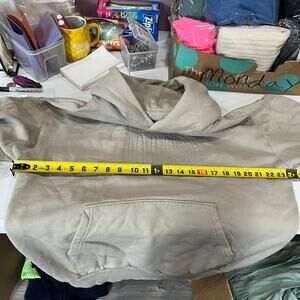 Condition: Please note there is a discolored spot on the back of the hoodie. Please refer to the provided photo for a closer look. Despite this minor flaw, the hoodie is in otherwise good condition.