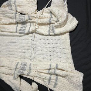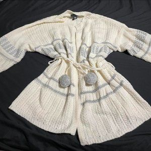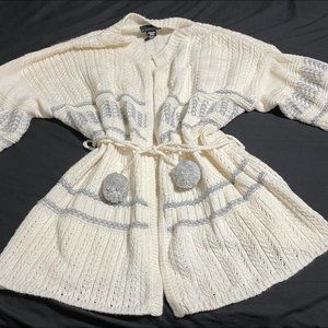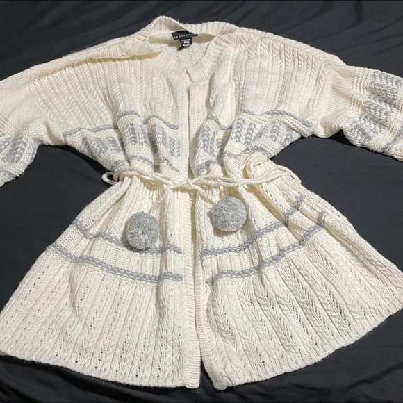 Taylor Swift -esque chunky Cardigan. Oversized, knit cardigan with waist defining tie. Super cute and warm, perfect for cold weather. Sized XL but could fit anyone because it’s meant to be oversized/something you shrug on.