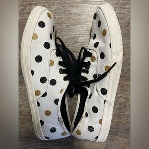 Taylor Swift special edition black and gold (sparkly) polka dot on a white background. Worn twice with tiny signs of wear (see the photos). Size 8.5 with black laces.