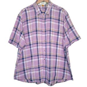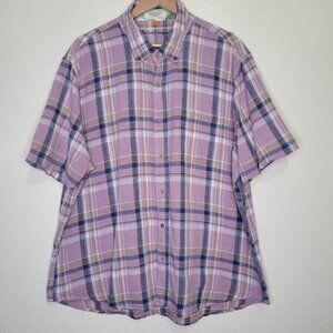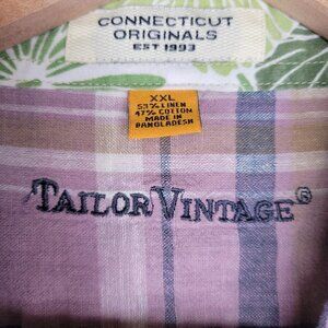 Taylor Vintage Linen Blend Desert Plaid Button Down Shirt, Size XXL