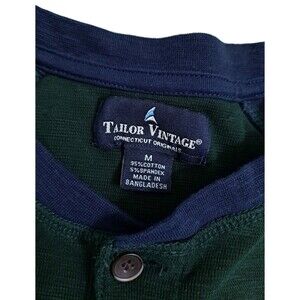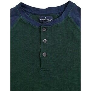 Taylor Vintage Men's Medium Henley Raglan Button Stretch Shirt Blue Green