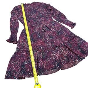 Taylor Women's Black Maroon Print L/S Chiffon Smocked Waist Dress 8 Bohemian