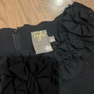 Taylor Womens Dress Sheath Rosette Neckline Black Cap Sleeve Size 6