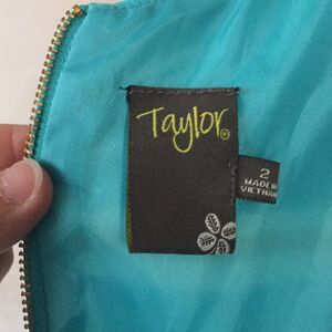 Taylor Womens Dress Size 2 Pleated A Line Turquoise Tan With Floral Dress