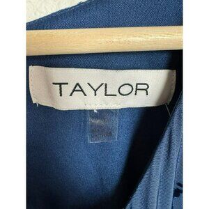Taylor Women's Midi Dress Blue Velvet Floral Size 14W Short Sleeves New V Neck