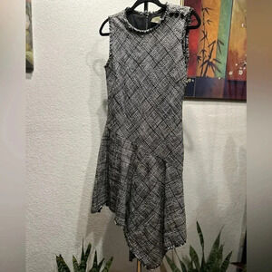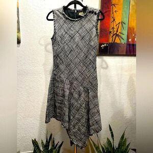 Taylor Women's Plaid Asymmetrical Hem A Line Dress White Size 8