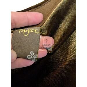 Taylor Women's Size 2 Olive Green Cowl Neck Sleeveless MIDI Velvet Dress