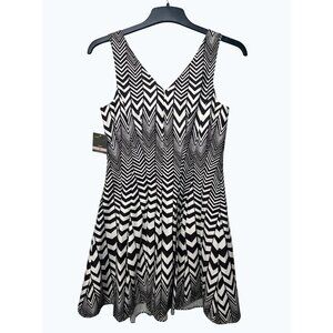 Taylor Womens Sleeveless Chevron Stripe Fit Flare Dress Size 6
