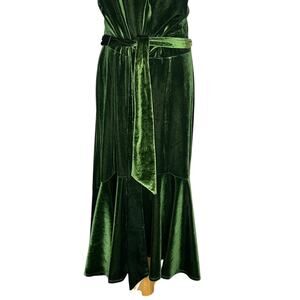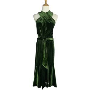 Taylor Women's Velvet Halter Green Asymmetrical Hem Dress Holiday Celebrations
