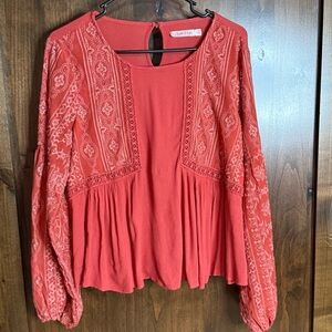 Taylor and Sage red womens Size L rayon long sleeve blouse elastic wrists flowy