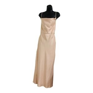 Taylor champagne light pink spaghetti strap cowlneck silk look maxi gown size 16