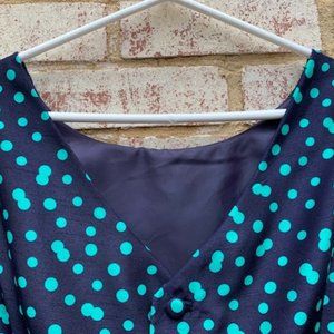 Has three buttons in the back and a 5" zipper under the last button. Also has a eye hook clasp on the ribbon on the back of the dress to fasten.