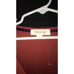 Size Large, could fit a medium. Red with flower design, cute flowey sleeves, and a cross top with tassel strings. Like new with no stains or rips