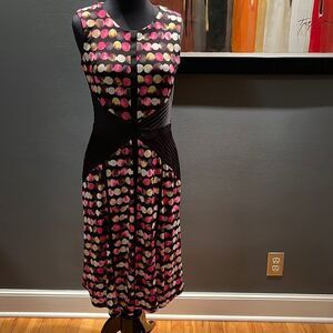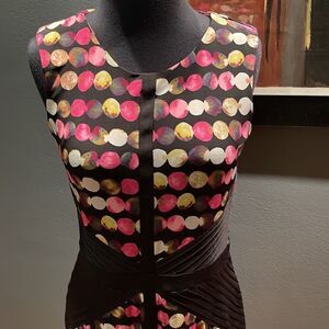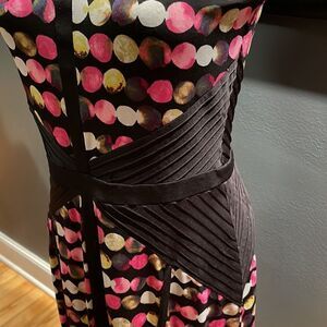 Taylor watercolor dot ridged cinched waist detail stretch knit midi. Size 6.