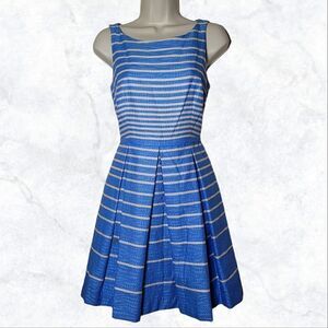 Taylor Textured Striped Blue & White Fit & Flare Dress w/ Pockets;