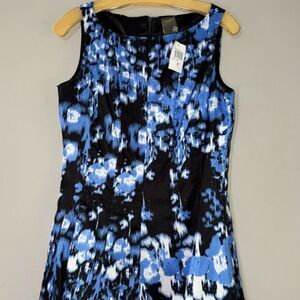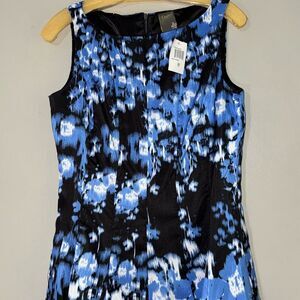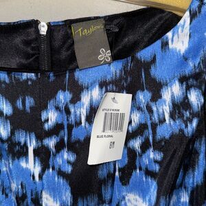 This stunning Taylor sundress features a vibrant blue skirt contrasted by a vibrant white floral pattern, perfect for a cocktail night out. The sleeveless design and midi length offer a chic and modern silhouette, making it an eye-catching choice for any evening occasion.