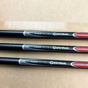 TaylorMade golf shafts with a sleek black and red design. Ultralite and tip soft for enhanced performance.