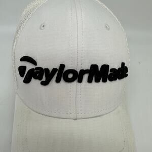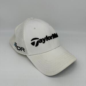 TaylorMade Hat Cap Fitted Mens White Flex Tour Preferred SLDR Golfing Golf S/M