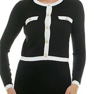 Sweater Knit Scoop Neck Long Sleeve Contrast Trim gold bottoms size S trendy excellent condition