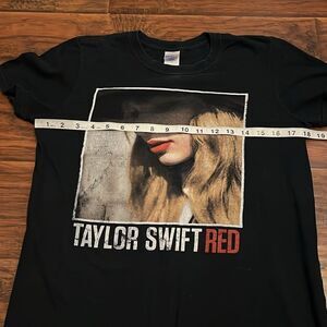 Taylor Swift Black Graphic Red Shirt, size small, please note; has signs of wear, cracking on graphic, fading and a snag/wear on one armpit area.