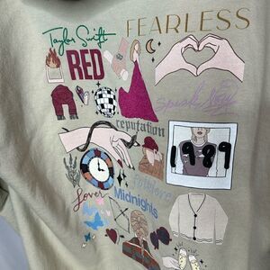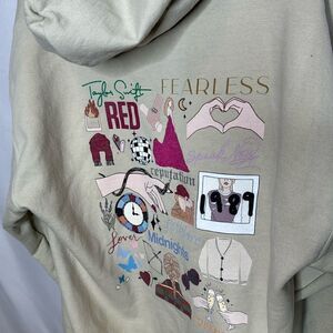 Taylor Swift Tan Hoodie Sweatshirt. Size Large. Graphics from each album on back. Excellent condition.