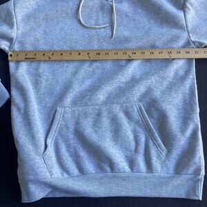 Classic gray heather color, long sleeves, front kangaroo pocket, drawstring hood