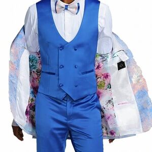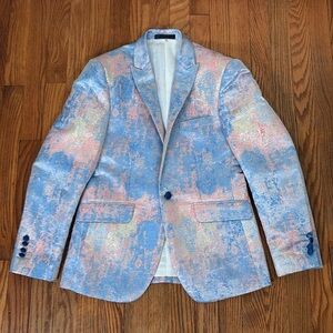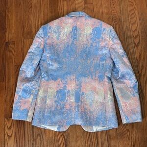 Tazzio Bespoke Europe Rose Gold Metallic Blue Skinny Fit Blazer Jacket 36S