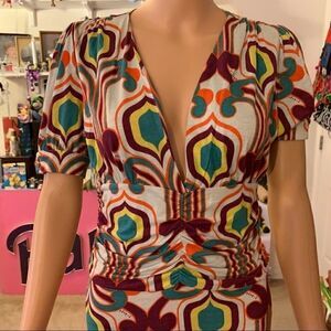 T-bagsāButtonāSleeveāRuchedĀ WaistāRayonāDressāXS