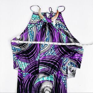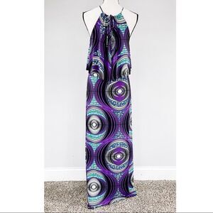 Tbags Los Angeles • Metal Necklace Halter Top Printed Stretch Maxi Dress Sz S