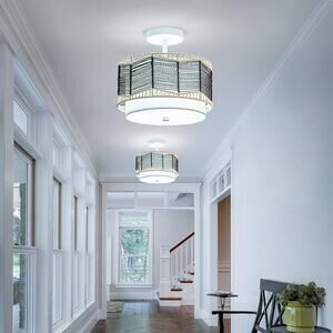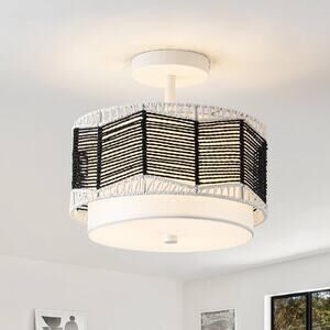 White Black 3 Lights Semi Recessed Ceiling Lamp Mount Rattan Fabric Ceiling Mount Boho Light Lamps with Fabric Display Ceiling Lights for Bedroom, Lobby, Hallway, Farm