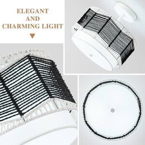 Tbaoinla - 3-light rattan ceiling lamp, black and white, bohemian lighting fixture for bedroom, with fabric display, ceiling lights, for hallways, entrance, living room