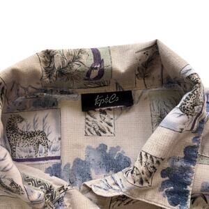 Tcp & Co Animal Print Button Shirt Beige Blue Safari Wildlife Vintage 90s