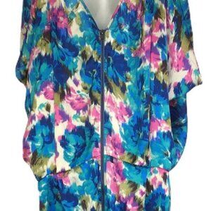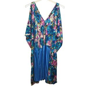 Te Amo Womens 24 Kaftan Dress Deep VNeck Full Back Zip Flutter Sleeve Blue Pink