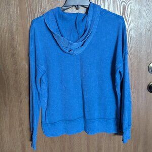 Te Verde brand blue athletic hoodie pullover, size SMALL. Thinner waffle-like texture, slits on the sides. Like new condition.