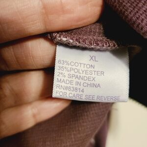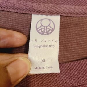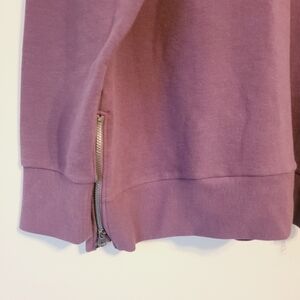 Women's eggplant/purple ribbed crewneck sweatshirt with side zippers by Te Verde, size XL. Fabric blend of cotton, polyester and spandex. Side zippers create a more casual look. Excellent pre-owned condition overall; small snag on front of sweatshirt (see pic 7).