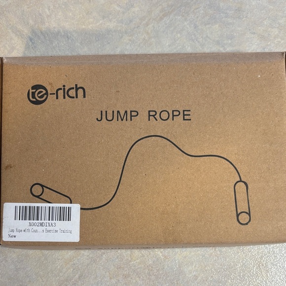 Te-Rich jump rope in packaging. Ideal for exercise training. Brand new. With automatic counter.